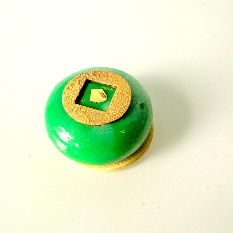 Seasonal flavor: apple hibiscus confiture, cinnamon mini mac allergens: dairy, gluten, nut (almond flour)